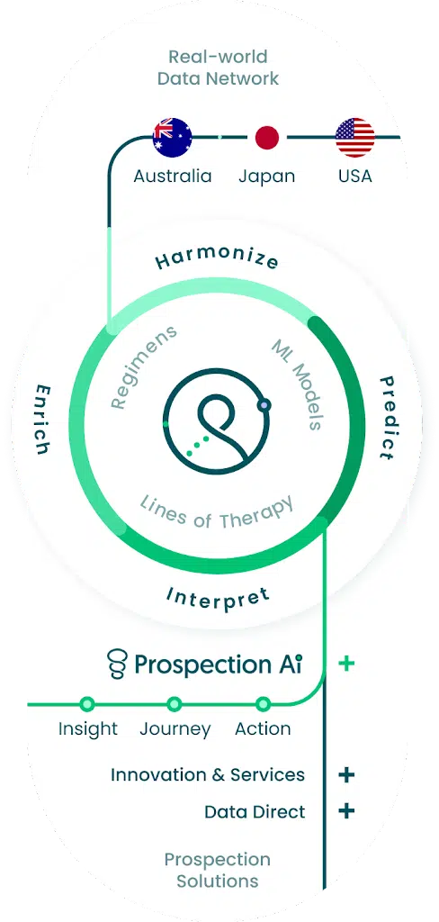 Prospection’s proprietary data and technology engine, the Patient-centric Intelligence Core, sits at the center of what we do, powering our products, services, and enriched data offerings. This first-of-its-kind engine enables a patient-level understanding across hundreds of millions of complex, longitudinal patient journeys reflective of entire patient populations…analyzed in seconds. Transactional, real-world data just got a whole lot smarter, complete with regimens, lines of therapy, and more.
